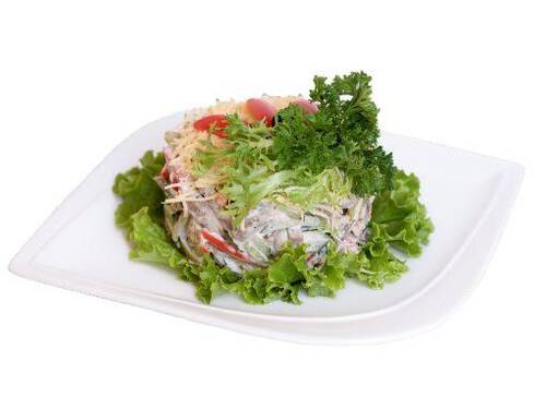 Руккола, пекинская капуста, помидоры, маслины, сыр, горчица «Дижонская», уксус бальзамический, оливковое масло.
